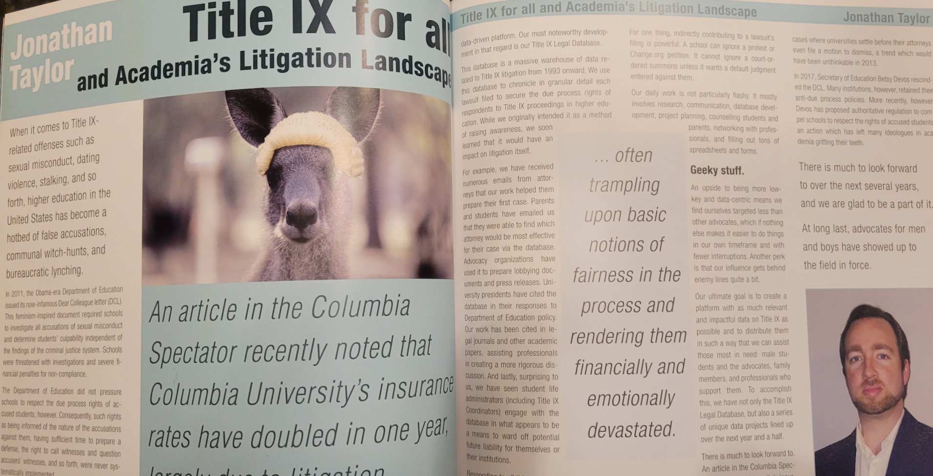 Hi, I’m Jonathan. People sometimes ask me how I got into this and what motivates me. In another life, I was a higher ed instructor. I saw some things happening in academia that I disagreed with, and worse things on the horizon. One of them was how teachers and students accused of misconduct were too often presumed guilty and treated unfairly, largely due to the one-sided and biased politics that dominate discussions about gender equality in higher education.